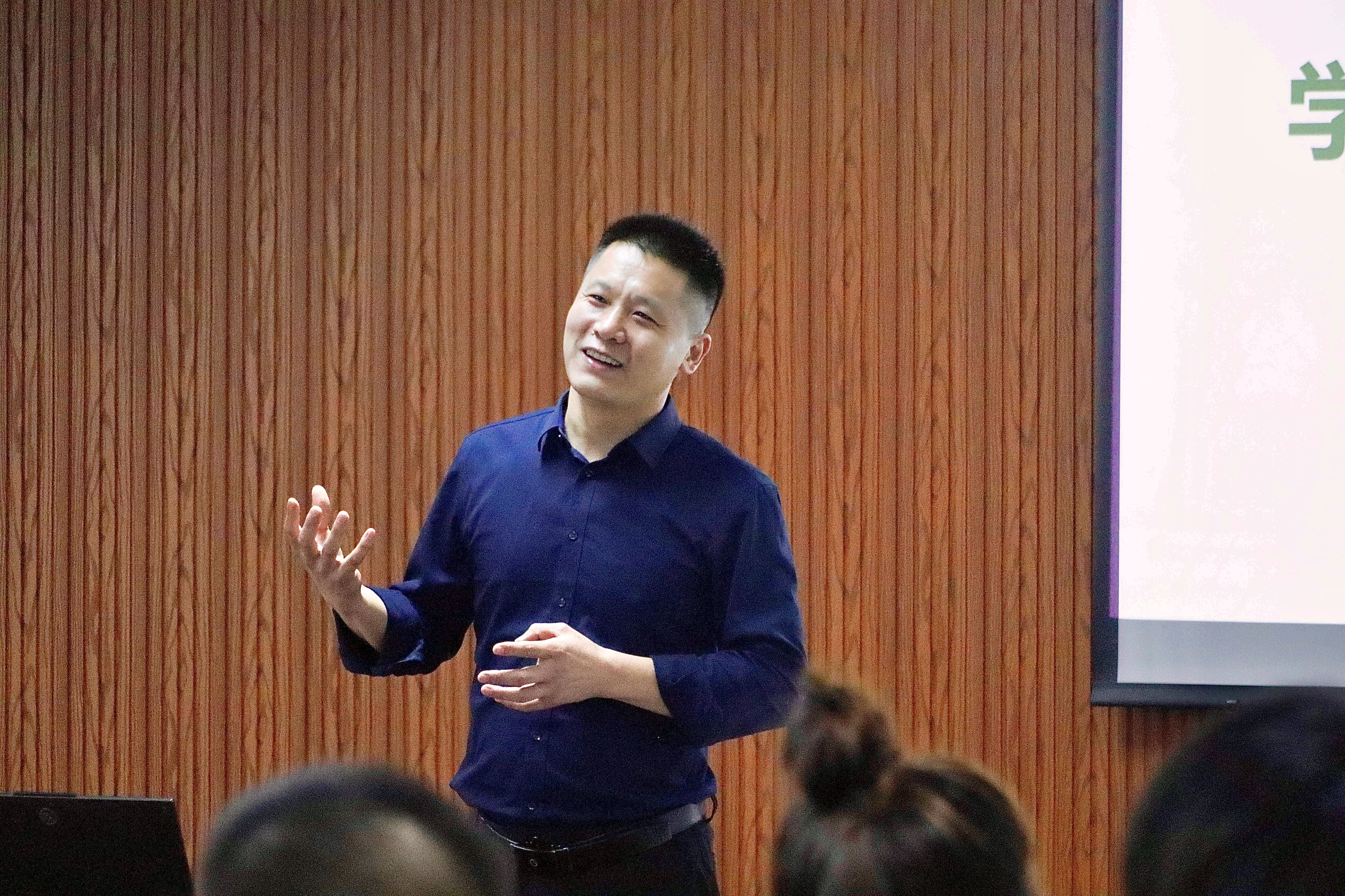 田盛以自己在校新媒体运营和宣传片制作方面的实践经验为切入点,引出“如何做好新闻宣传照片拍摄?”这一议题。他指出,生动的照片能够增添推文的丰富性,为使推文呈现出最好的效果,文稿产生后需要用不同照片、视频来配合。