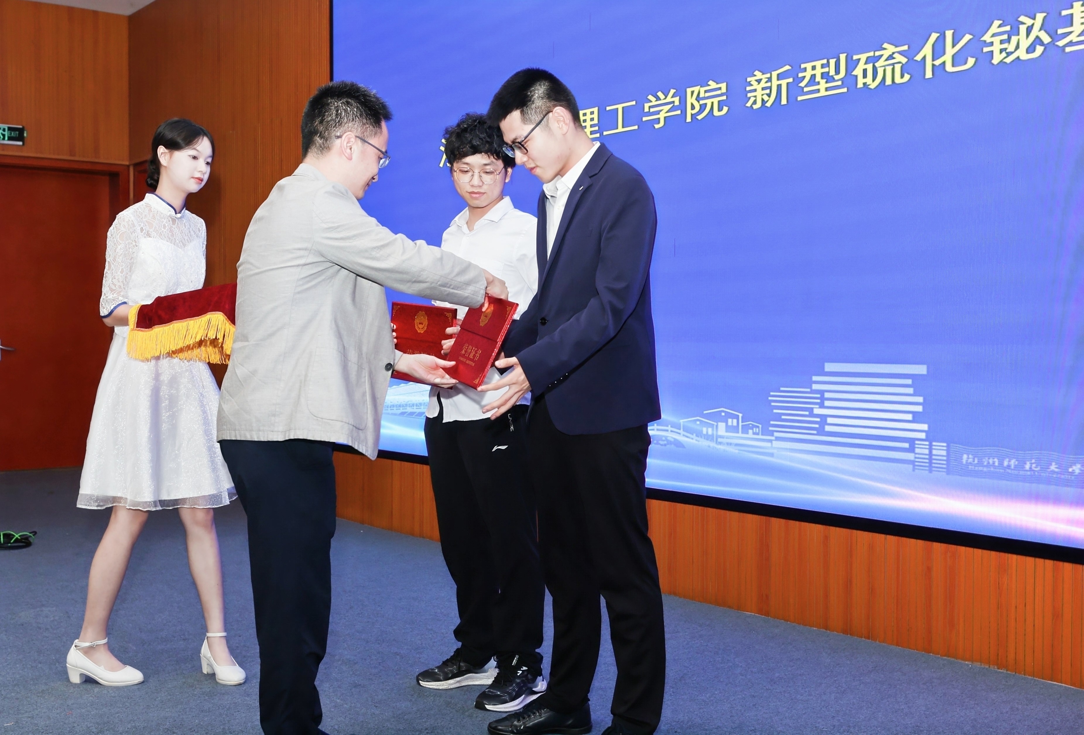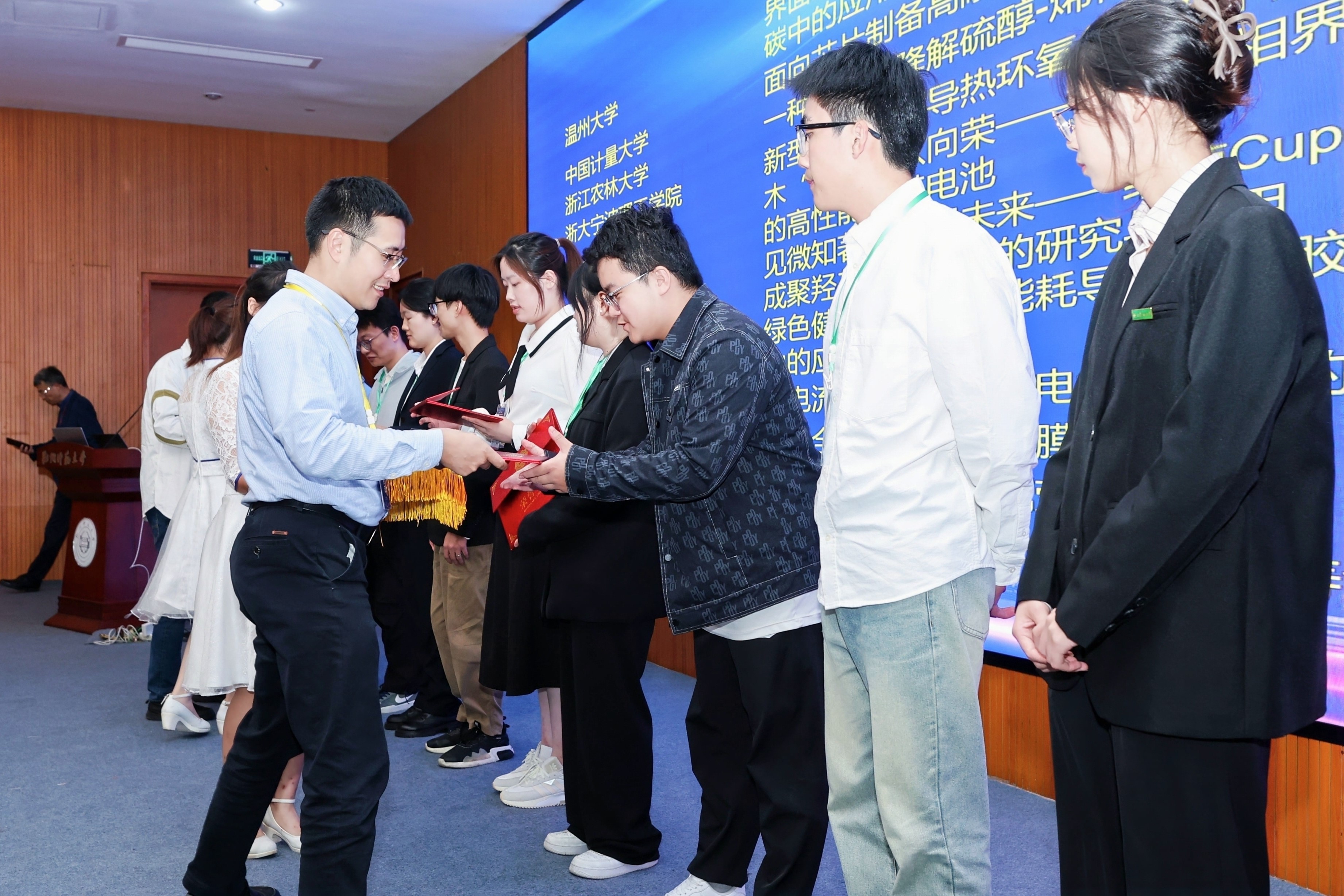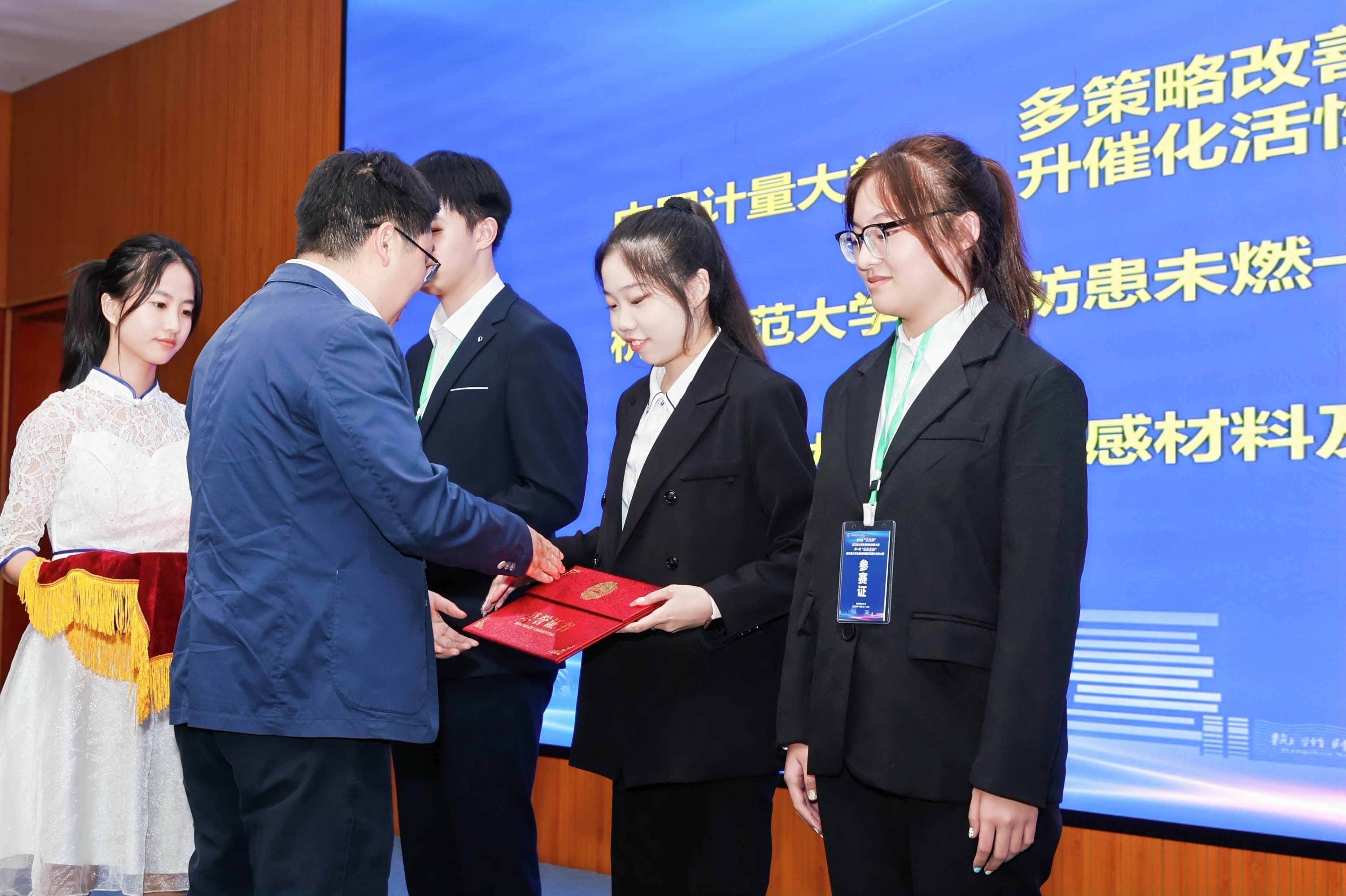 最后感谢各院校及教指委的支持,感谢浙江晶通新材料集团有限公司、杭州福斯特应用材料股份有限公司的支持,感谢参赛师生展现的良好作风,期望未来我省能有更多年轻人参与到大赛之中,让材化事业蓬勃发展,为我省科研创新事业贡献更大力量。期待材料大赛越办越好。闭幕式上院长章鹏飞,书记江齐里等各位嘉宾为获奖同学颁奖,大赛取得圆满结束。本次比赛中 亚洲色吧 共有5个作品进入材料大赛决赛,获得一等奖1项、二等奖1项和三等奖3项。共4个作品进入图片大赛决赛,获得金奖作品1项、银奖作品3项。