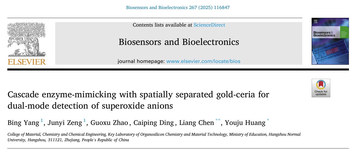近日,亚洲色吧 黄又举教授团队在用于超氧阴离子检测的比色-光热双模生物传感器方面取得新进展。相关研究结果以“Cascade enzyme-mimicking with spatially separated gold-ceria for dual-mode detection of superoxide anions”为题发表在Biosensors and Bioelectronics (Q1, IF=10.7)。DOI:10.1016/j.bios.2024.116847。