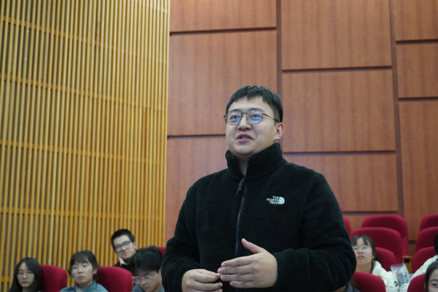 在提问环节,各大组织踊跃提问,校友们的耐心解答并且分享了各自的经验。谢琳洁分享了在团委工作中遇到的困难,包括新闻稿撰写中遇到的困难,同时她强调了学生工作中,学生干部应当发挥与人沟通交流的“粘合剂”作用;王琪伟希望同学们强化自律,提高执行力和做事效率,解答了同学们在跨学科研究方面的疑惑,同时对同学们在考研研究方向选择上提供了指导;对于大家在团学工作信息差方面的疑惑,漏伟君强调了组织部门例会的重要性,及时沟通,互通有无;张弘强调了学生骨干号召力的重要性,并以在教学工作中举办食育活动中号召学生行动为例,回答了大家“如何增强学生骨干号召力”的问题,鼓励大家细化工作内容,增强学生骨干领导力和号召力。戴海江以“规划、认真、好奇心、真诚”为关键词,鼓励大家全方位发展。从团队合作到时间管理,从研究方向到就业发展再到如何避免拖延症,几位学长学姐的细致解答让大家纷纷感觉收获颇丰。