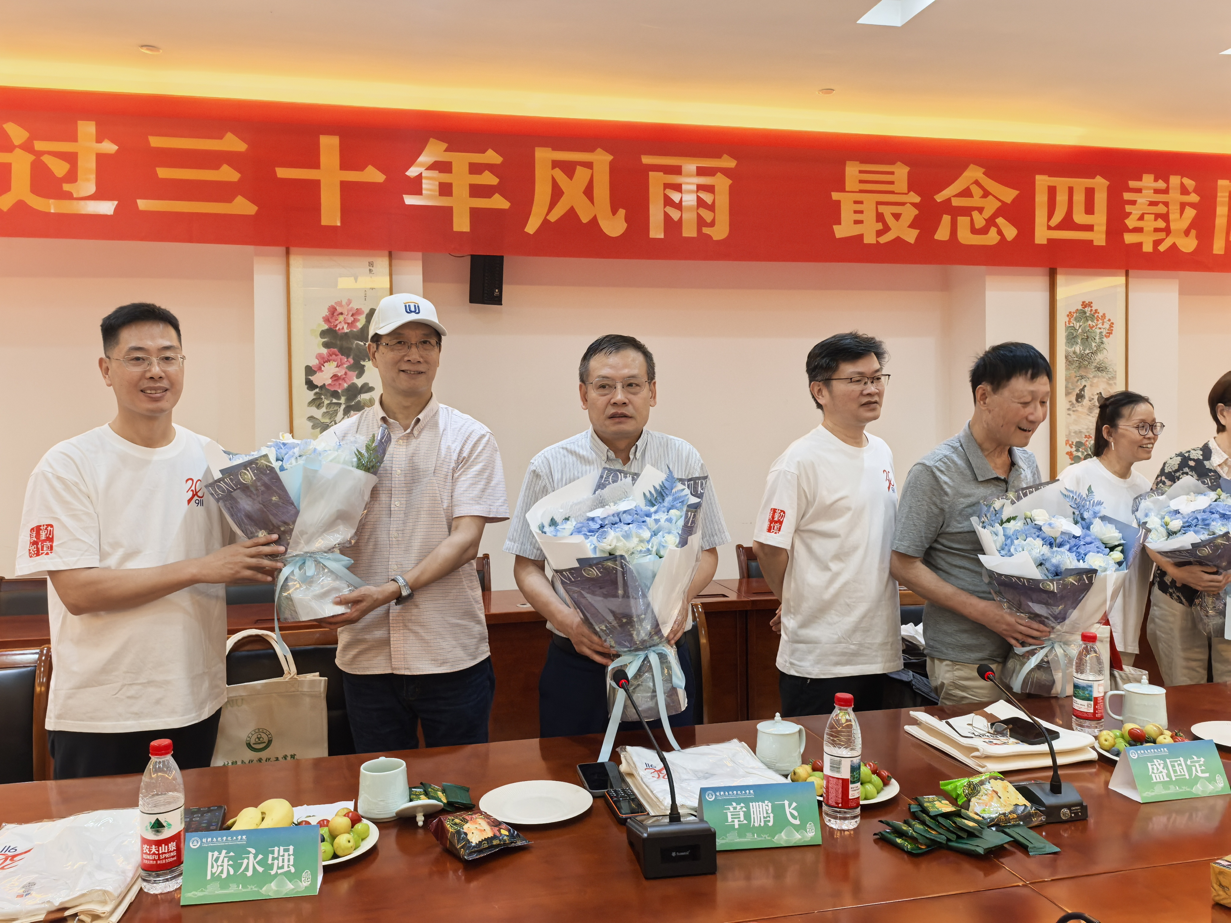 8月9日-10日,亚洲色吧 化学911班校友们怀揣着对往昔的追忆与对师友的思念,隆重举行毕业30周年同学会。9日下午,近三十位校友重返母校,齐聚一堂,共同回忆青春,畅谈未来。出席本次活动的嘉宾有学院院长章鹏飞,时任化学系主任盛国定、党总支书记张孝琴、班主任傅水玉、辅导员陈永强、专任教师徐土根。这场跨越三十年的相聚,让曾经的青春身影再度重逢,共话当年情,同叙新篇章。座谈会由校友代表高伟国主持。